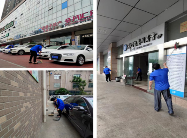 為把創(chuàng)城迎檢工作真正落實(shí)到實(shí)處,物業(yè)公司主動作為,積極推進(jìn)。一是積極開展白色垃圾、煙頭等清理清掃工作,做到不留盲點(diǎn)、不留死角。二是重點(diǎn)整治車輛亂停亂放等突出問題,及時(shí)更換損壞老化的設(shè)施設(shè)備,加大排查安全隱患力度。三是集中修剪綠化,清理雜草枯草,確保小區(qū)環(huán)境干凈美化,及時(shí)修補(bǔ)破損路面、墻面。盡管頭頂烈日,汗如雨下,物業(yè)公司全體人員嚴(yán)格按照“八無十清理”創(chuàng)城標(biāo)準(zhǔn),堅(jiān)守一線,用汗水和熱情守護(hù)小區(qū)文明,助力創(chuàng)城達(dá)標(biāo)。
