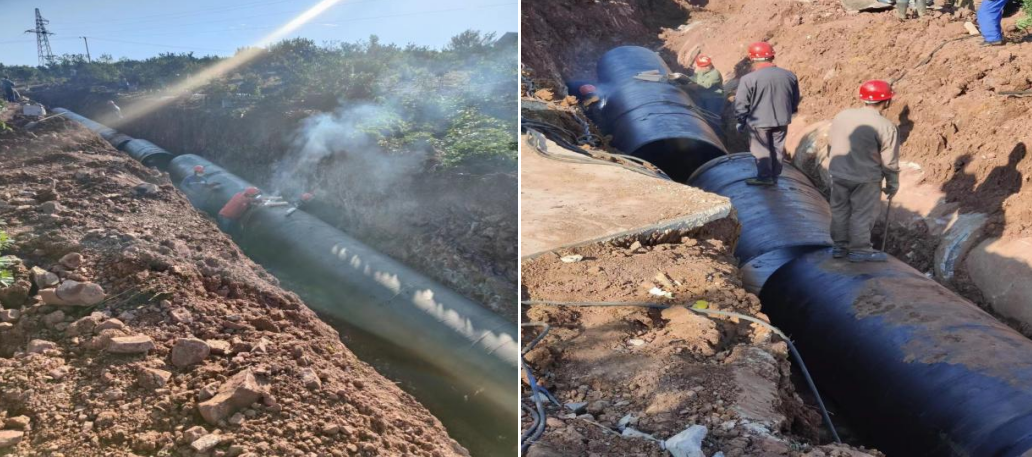 各部門精誠合作,克服復(fù)雜地形、調(diào)度和運輸困難等諸多不利因素,堅守施工現(xiàn)場,搶抓施工進度,終于在12日晚6點完成70米DN1200鋼管焊接任務(wù),10月14日進行管道試壓及沖洗消毒,恢復(fù)正常供水。