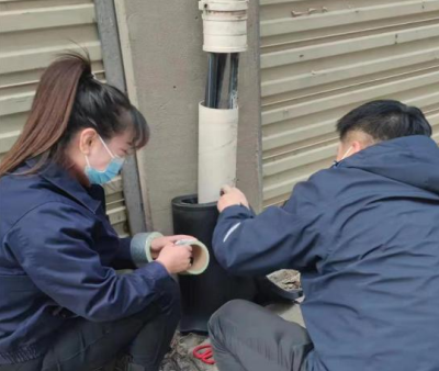 集團(tuán)及時(shí)更新匯總表務(wù)相關(guān)信息,安排專人對(duì)容易上凍或保溫材料缺失的裸露管道、高層小區(qū)管道井上下隔層空隙處加塞保溫棉,防止因樓層串風(fēng)或漏水造成冰凍的損失。同時(shí),我們?cè)跇堑来皯?、消防門等設(shè)施處張貼“隨手關(guān)閉”提示語,提醒用戶養(yǎng)成隨手關(guān)門窗的習(xí)慣,進(jìn)一步預(yù)防冰凍情況發(fā)生。