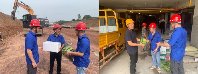 潤澤公司一行先后前往高鐵新城片區(qū)尉遲公路管網(wǎng)改造項目、印象未來城戶表項目、龍井大道管網(wǎng)改造項目等施工現(xiàn)場慰問職工,傾聽職工心聲,收集改進建議。現(xiàn)場發(fā)放解暑飲料、防暑藥品,并向不畏酷暑、堅守一線職工們表示敬意。