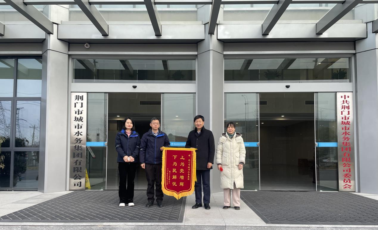 1月24日,掇刀區(qū)明月小區(qū)業(yè)委會向市水務(wù)集團(tuán)贈送“上為黨增輝,下為民解憂”的錦旗,為集團(tuán)幫助該小區(qū)徹底解決二次供水設(shè)施噪音擾民問題表示謝意。