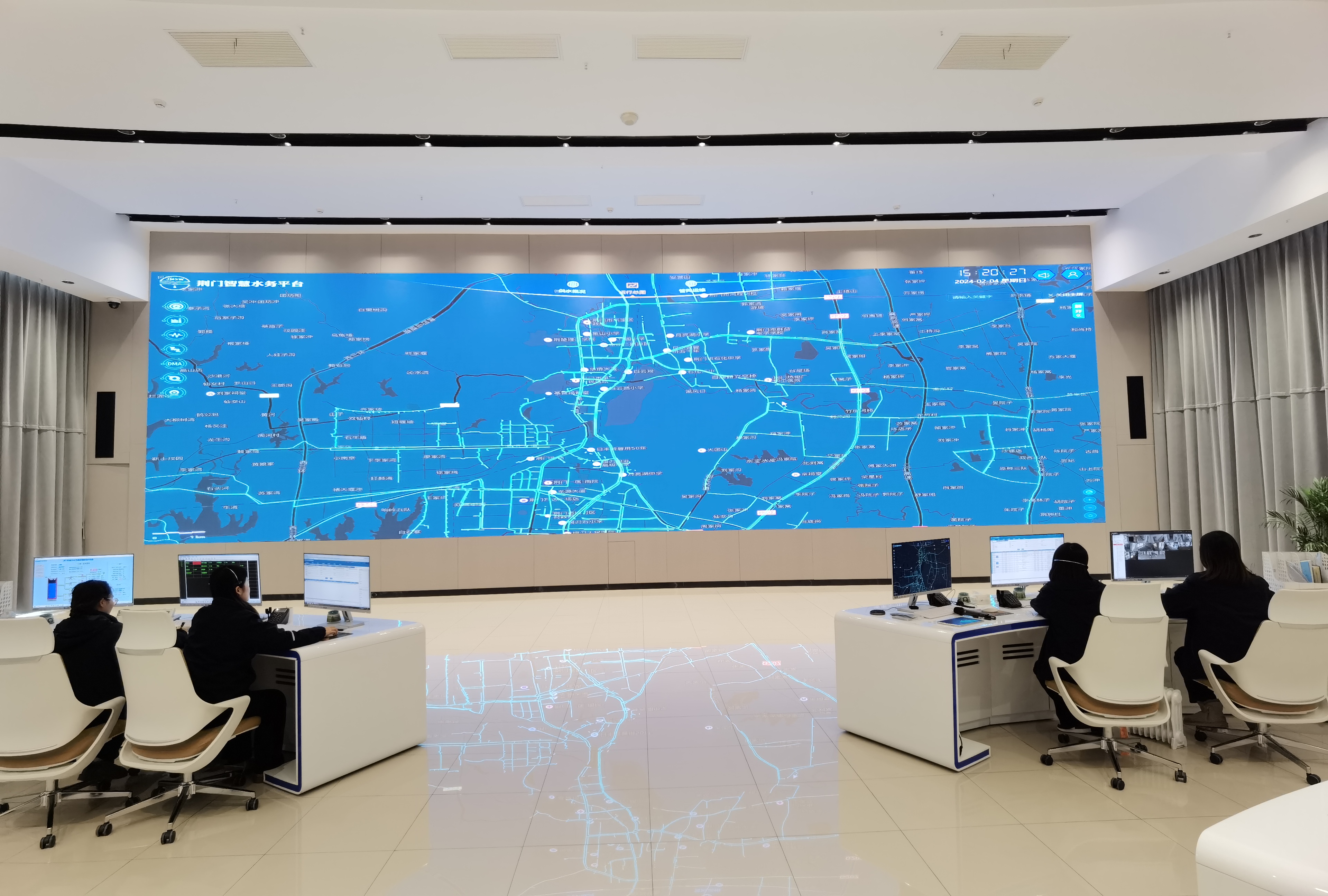 圖為市水務(wù)集團(tuán)調(diào)度指揮現(xiàn)場(chǎng)
