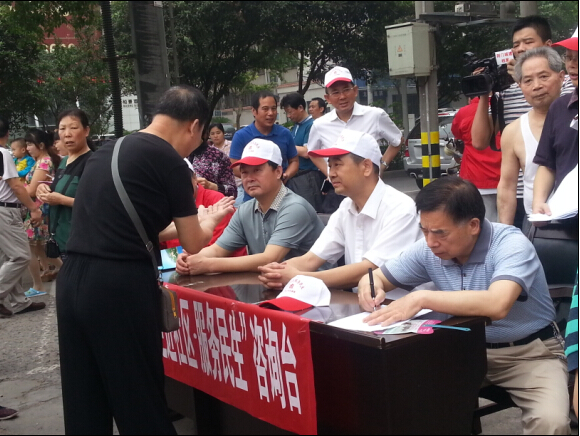 市住建委主任委員楊劍(中)、市供水總公司總經(jīng)理陳衛(wèi)國(左一)在“走進社區(qū)、服務民生,走進企業(yè)、服務發(fā)展”活動中,深入龍泉街辦團結(jié)社區(qū)了解群眾訴求,解決具體問題。