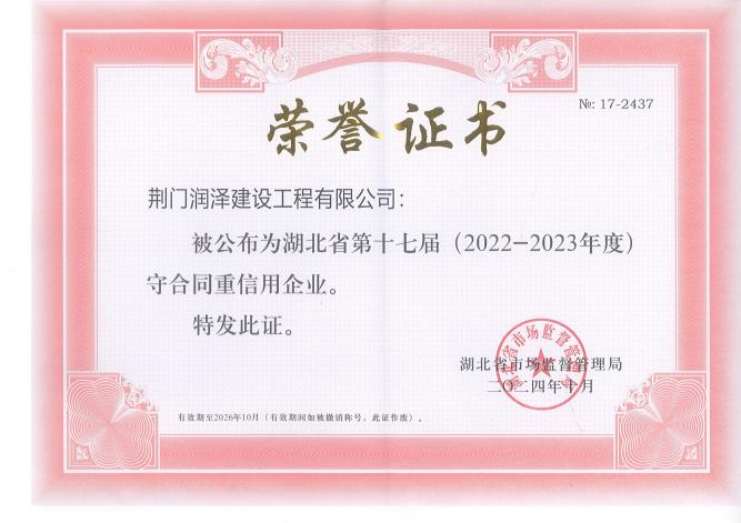 憑著“誠信為本、質(zhì)量為根”的堅(jiān)守,潤澤公司連續(xù)兩年獲評(píng)荊門市和湖北省(2022-2023年度)“守合同重信用企業(yè)”,市場(chǎng)競(jìng)爭(zhēng)力和品牌影響力持續(xù)攀升。