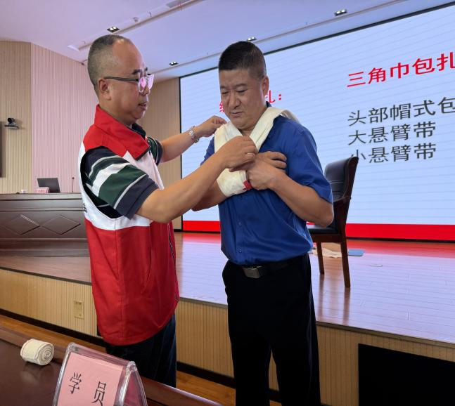 本次培訓(xùn)內(nèi)容豐富實用,既涵蓋國際紅十字運動基本知識、救護新概論等理論內(nèi)容,又聚焦現(xiàn)代救護技術(shù)開展實操訓(xùn)練。培訓(xùn)中,講師系統(tǒng)講解心肺復(fù)蘇與AED操作技能,通過現(xiàn)場演示、手把手指導(dǎo),幫助參訓(xùn)人員熟練掌握這一關(guān)鍵生命救護技術(shù);在創(chuàng)傷救護環(huán)節(jié),不僅細致講解止血、包扎、骨折固定等基礎(chǔ)方法,還針對氣道異物梗阻、燒燙傷、踝關(guān)節(jié)扭傷等常見意外傷害的現(xiàn)場處理展開深入教學(xué)。