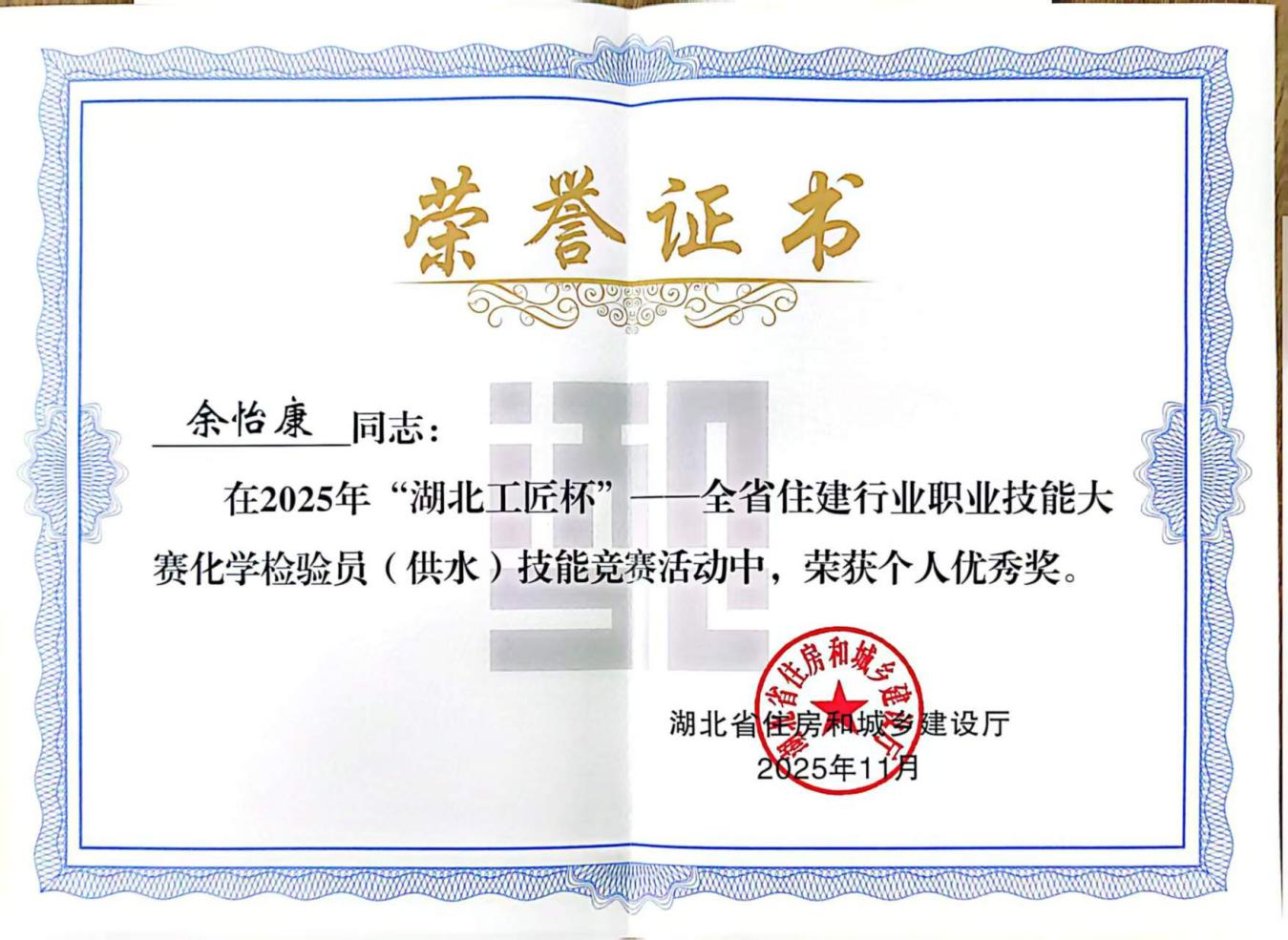 近日,荊門水務(wù)集團(tuán)成功獲評(píng)第五屆全國(guó)城鎮(zhèn)供水排水行業(yè)職業(yè)技能競(jìng)賽湖北省選拔賽道德風(fēng)尚獎(jiǎng)。集團(tuán)參賽選手不負(fù)眾望,取得佳績(jī)。詠泉公司付傳艷、余怡康榮獲個(gè)人優(yōu)秀獎(jiǎng),排水公司李治洋獲得第七名。