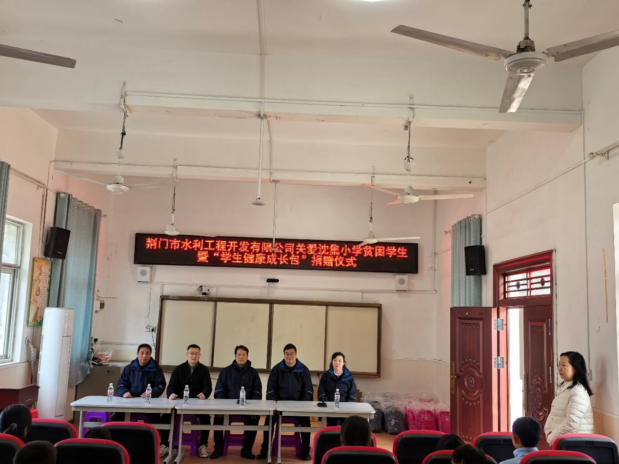 3月11日下午,荊門市水利工程開發(fā)有限公司(以下簡稱“荊門水發(fā)公司”)走進(jìn)沙洋縣沈集鎮(zhèn)中心小學(xué),開展市關(guān)工委組織的“關(guān)愛青少年健康成長包”專項捐贈活動。