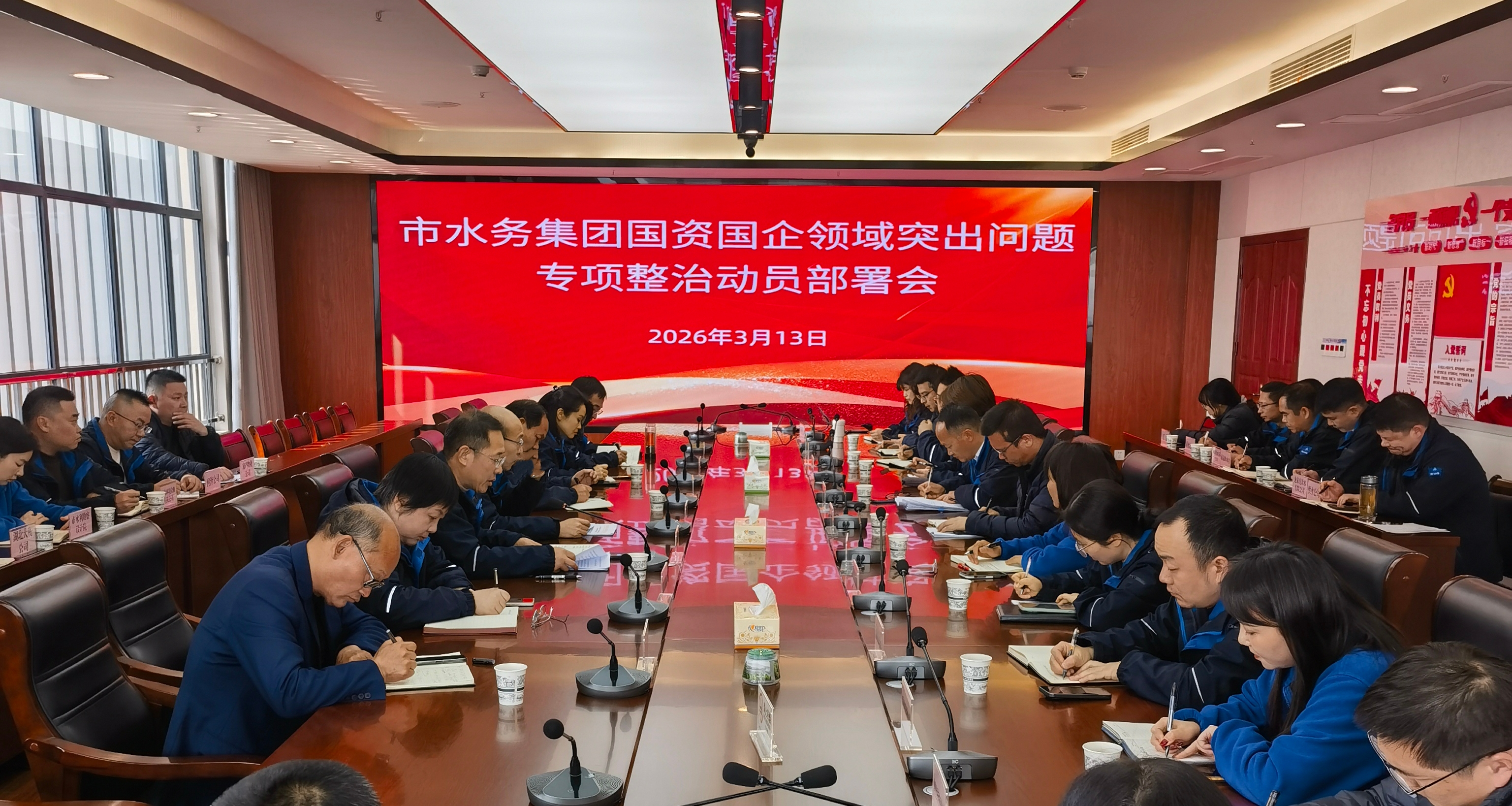 3月13日下午,市水務(wù)集團(tuán)召開國資國企領(lǐng)域突出問題專項整治動員部署會。集團(tuán)黨委書記、董事長陳永根出席會議并作動員講話,派駐紀(jì)檢組組長、集團(tuán)黨委委員、紀(jì)委書記劉高軼主持會議。集團(tuán)領(lǐng)導(dǎo)班子成員和各單位(部門)主要負(fù)責(zé)人參加會議。