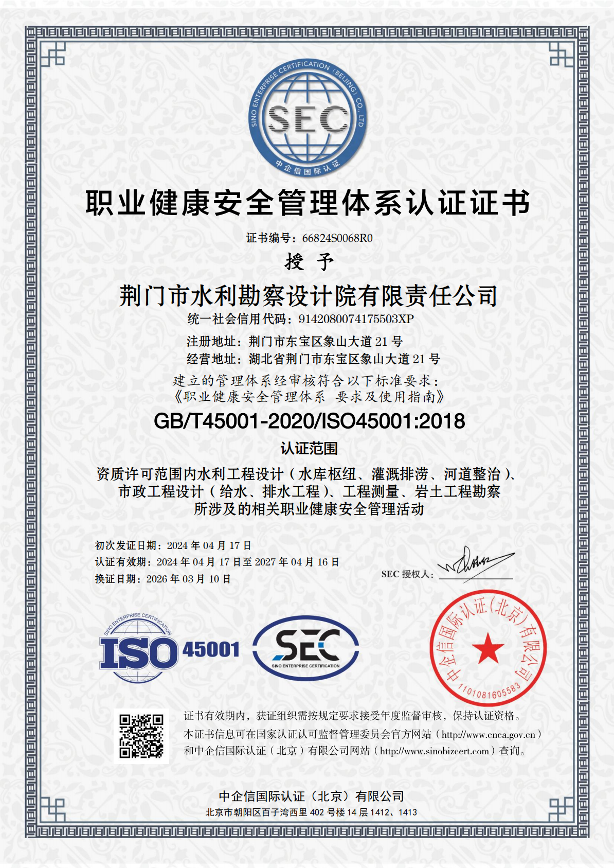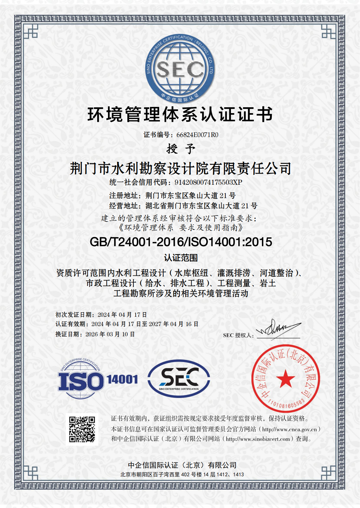 近日,市水務(wù)集團(tuán)下屬子公司荊門市水利勘察設(shè)計(jì)院有限責(zé)任公司(以下簡(jiǎn)稱“水勘院”)順利通過(guò)QES(質(zhì)量、環(huán)境及職業(yè)健康安全)三體系再認(rèn)證審核,并新增市政工程設(shè)計(jì)(給水、排水工程)認(rèn)證范圍,這標(biāo)志著水勘院從水利工程向市政水務(wù)工程領(lǐng)域邁出了實(shí)質(zhì)性的一步。