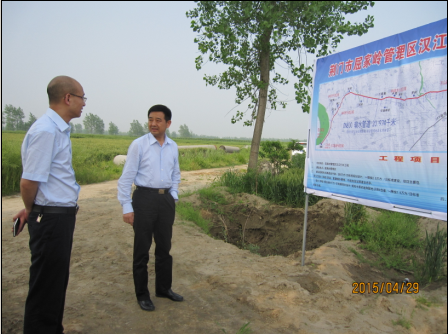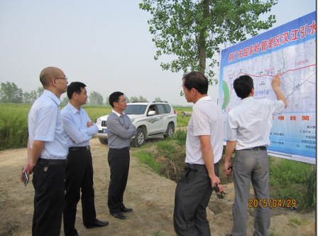 4月29日下午,市委副書記、市長肖菊華、副市長鄭中華在屈家?guī)X、市水務(wù)局等相關(guān)部門、市住建委黨委書記、主任楊劍、市供水總公司黨委書記、總經(jīng)理陳永根陪同下視察漢江引水工程現(xiàn)場,肖市長要求市水務(wù)局配合屈家?guī)X政府抓緊辦理完善項(xiàng)目前期手續(xù);啟動(dòng)加快財(cái)評、招投標(biāo)等相關(guān)手續(xù);加快推動(dòng)工程建設(shè)。市住建委黨委書記、主任楊劍表示漢江引水工程手續(xù)完備后,按照肖市長時(shí)限要求,兩個(gè)月內(nèi)完成全線施工,要求市供水總公司制定兩個(gè)月施工方案,倒排工期,精心組織,確保完成。