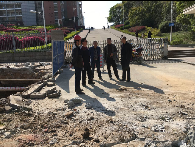 328,市供水總公司黨委書記、總經(jīng)理陳永根,副總經(jīng)理曾波、羅家發(fā)一行到象山大道DN1200管道施工現(xiàn)場(chǎng)檢查工作。由于象山大道目前交通壓力大、施工場(chǎng)地狹小、吊裝困難,公司領(lǐng)導(dǎo)在現(xiàn)場(chǎng)調(diào)研安排。維修處處長(zhǎng)劉立華介紹了項(xiàng)目推進(jìn)情況,表示雖然施工難度大,但會(huì)克服困難,在保證施工安全基礎(chǔ)上,加快施工進(jìn)度,力爭(zhēng)按期完成象山大道DN1200管道施工任務(wù)。