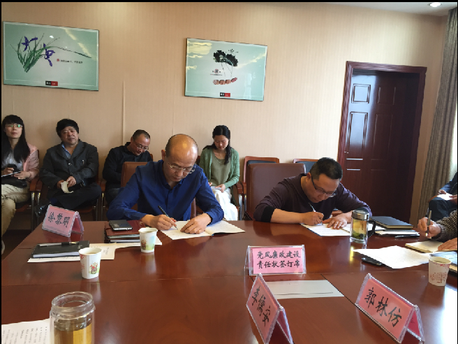 4月28日,公司召開黨委中心組擴大會議,對“兩學一做”活動做出安排部署,并進行系統(tǒng)理論學習。會前,黨委書記、總經理陳永根、黨委副書記、紀委書記、工會主席徐黎明分別與各支部書記、各單位(處室)負責人簽訂2016年黨風廉政建設責任狀。