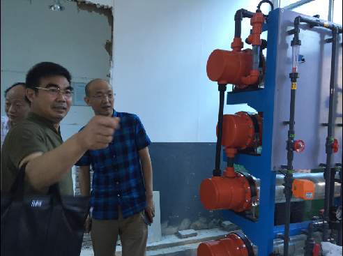 一水廠為城市備用水廠,始建于1969年,以前凈化工藝采取傳統(tǒng)的加氯(氯氣瓶儲存供應(yīng))方式,考慮到一水廠地處省重點(diǎn)中學(xué)龍泉中學(xué)旁,人口密集,存在?;沸孤┌踩[患,公司通過考察,慎重決策,在內(nèi)地(目前僅在沿海地區(qū)發(fā)達(dá)城市應(yīng)用)首家引進(jìn)次氯酸鈉加氯(電解反應(yīng),邊制造邊供應(yīng))方式,投資50萬進(jìn)行工藝改造,徹底解除這一公共安全隱患。在改造現(xiàn)場,公司黨委書記、總經(jīng)理陳永根要求,一水廠次氯酸鈉加氯改造項(xiàng)目要加快建設(shè),確保6月底前投運(yùn),同時要做好職工培訓(xùn)工作,確保人人能按新工藝規(guī)程進(jìn)行熟練操作,確保公共安全。