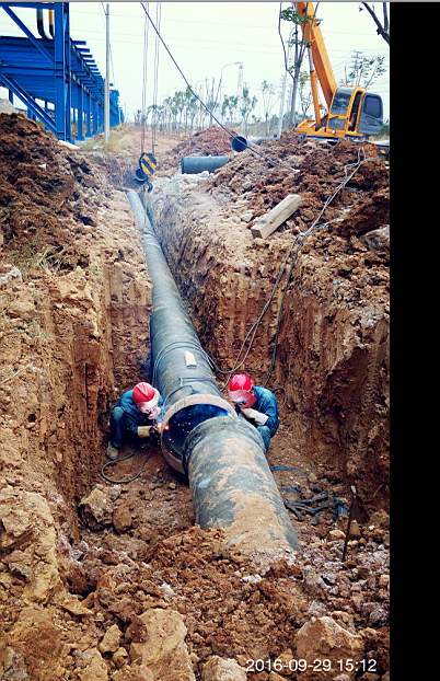 盈德氣體是荊門(mén)石化油品升級(jí)改造配套項(xiàng)目,是荊門(mén)市委、市政府重點(diǎn)招商引資項(xiàng)目,落戶于化工循環(huán)產(chǎn)業(yè)園。為服務(wù)好化工循環(huán)產(chǎn)業(yè)園,荊門(mén)市供水總公司19日接到鋪設(shè)盈德氣體專(zhuān)用DN600供水管道施工任務(wù)后,打破常規(guī),當(dāng)晚就安排人員、分解任務(wù);9月20日上午完成施工隊(duì)伍組織,工地測(cè)量、工程材料采購(gòu),下午立即進(jìn)場(chǎng)溝槽開(kāi)挖。施工期間正逢207外環(huán)線與陽(yáng)光大道部分路段封閉改造,公司積極與道路改造方協(xié)調(diào),利用每天道路施工間歇,將20根鋼管100根球墨管順利運(yùn)轉(zhuǎn)至工地。為了能在預(yù)定時(shí)間內(nèi)完成任務(wù),工人每天早晨5點(diǎn)半進(jìn)入施工現(xiàn)場(chǎng),一直到晚上10點(diǎn)施工結(jié)束,中午不休息,早、中、晚三餐就在現(xiàn)場(chǎng)吃快餐。十天鋪通盈德氣體專(zhuān)用840米DN600供水管道。