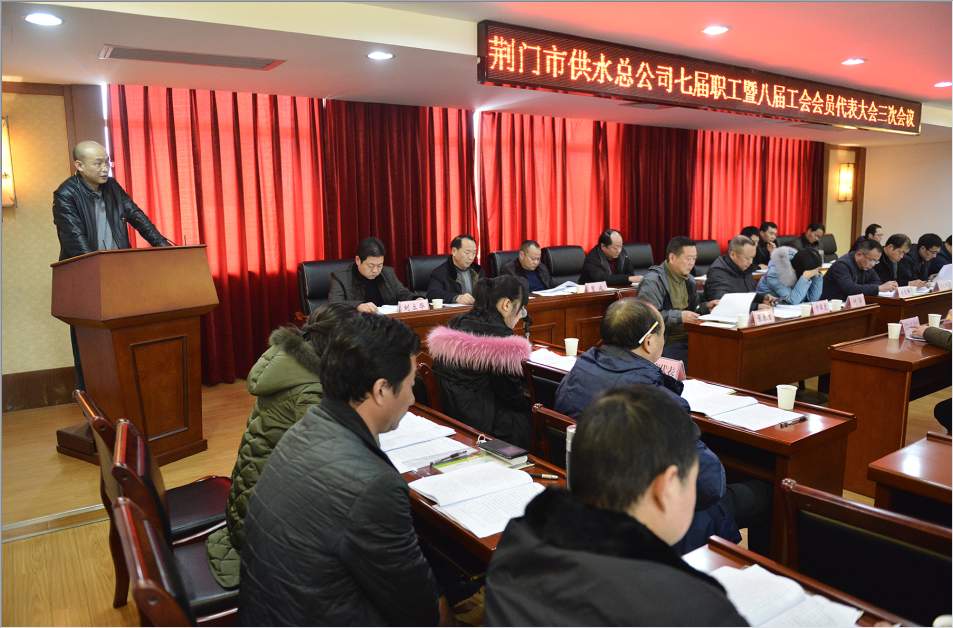 會議在莊嚴(yán)的國歌聲中開幕。公司黨委書記、總經(jīng)理陳永根作了《2016年度公司工作報告》,認(rèn)真總結(jié)了2016年度取得的各項成績;供水設(shè)施建設(shè)投資體制理順、5條道路供水管道改遷提前完成、國賓酒店環(huán)評獲批;管黨治黨高度前所未有、項目建設(shè)力度規(guī)??涨啊⒐局鬏o業(yè)產(chǎn)值連續(xù)五年雙過億,總額首次突破3億元等。客觀分析了當(dāng)前企業(yè)發(fā)展存在的機會和挑戰(zhàn),并對2017年度的工作作出了展望。黨委委員、工會主席馬兆芳,黨委委員、總會計師劉高軼分別作了《2016年度工會委員會工作報告》、《荊門市供水總公司2016年度財務(wù)預(yù)算執(zhí)行及2017年財務(wù)預(yù)算草案編制報告》、《荊門市供水總公司2016年度工會經(jīng)費執(zhí)行及2017年工會經(jīng)費預(yù)算情況報告》。職工代表提案審查小組組長卞軍虎對七屆職工暨八屆工會會員代表大會二次會議職工代表提案辦理情況作了報告,七屆職工暨八屆工會會員代表大會二次會議共收到34份職工提案,實際需要回復(fù)和辦理的提案為32份,已辦結(jié)的有27份,正在落實的5份,報告中對正在落實的提案進(jìn)行了說明。工會副主席張春生對本次會議征集職工代表提案作了報告,本次會議共收到19份提案,其中涉及經(jīng)營管理的5份,技術(shù)改革的1份,教育培訓(xùn)的1份,薪資福利待遇的12份。會議期間,與會代表給予六個報告充分肯定,圍繞各項工作報告,進(jìn)行了熱烈討論,提出了許多寶貴的建議和意見。