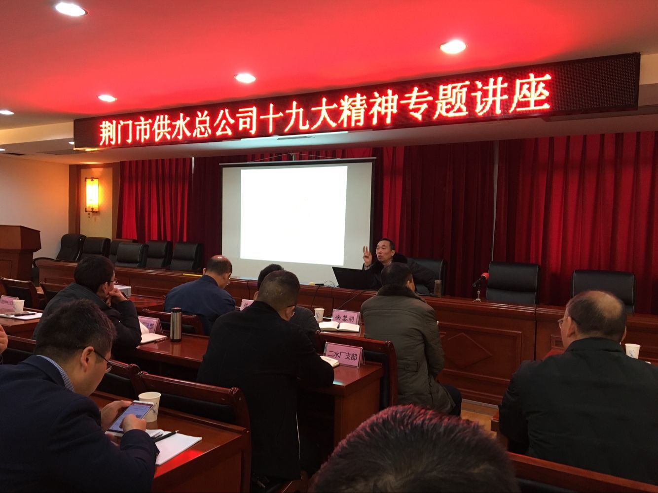12月7日上午,市供水總公司舉辦十九大精神專題講座。市委黨校教授應邀講解。公司領導和全體黨員共計120人參加此次培訓。