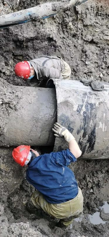 為盡快恢復(fù)供水,參與搶修人員直到下午2點才顧得上在現(xiàn)場匆忙吃一碗方便面午餐,下午4:40搶修工作順利完成,待封堵的水泥養(yǎng)護強度合格后于當晚8點該管線完全恢復(fù)正常供水。