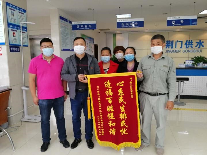 據(jù)了解,兩個(gè)家屬區(qū)位于虎牙關(guān)大道20號,共有近百戶居民。昨日記者采訪時(shí),兩家屬區(qū)居民都很高興,小區(qū)居民代表文后華專門買來了一箱純凈水,發(fā)給在場的記者和市供水總公司工作人員喝,欣喜之情溢于言表。隨后,文后華還將寫有“心系民生排民憂 造福百姓促和諧”的錦旗送給市供水總公司。