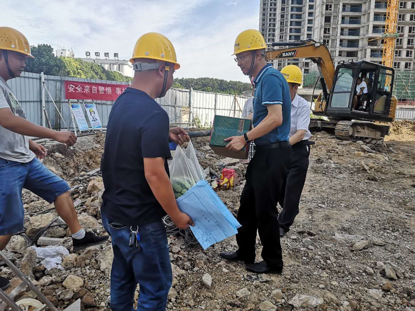 炎炎夏日,驕陽(yáng)似火。連日來(lái)我市高溫黃色預(yù)警信號(hào)持續(xù)拉響,這給在建給排水工程項(xiàng)目施工和供水生產(chǎn)帶來(lái)諸多不便和困難。為切實(shí)做好防暑降溫工作,確保夏季高溫安全生產(chǎn),8月7日上午,市供水總公司黨委書記、總經(jīng)理陳永根帶領(lǐng)公司黨委班子成員,分別到“誠(chéng)愛佳苑”戶表安裝項(xiàng)目、長(zhǎng)興大道管網(wǎng)改造工程等在建施工工地現(xiàn)場(chǎng),慰問(wèn)在高溫酷暑中堅(jiān)守崗位、辛勤勞動(dòng)的一線工人,為他們帶去西瓜、礦泉水等防暑降溫物品。