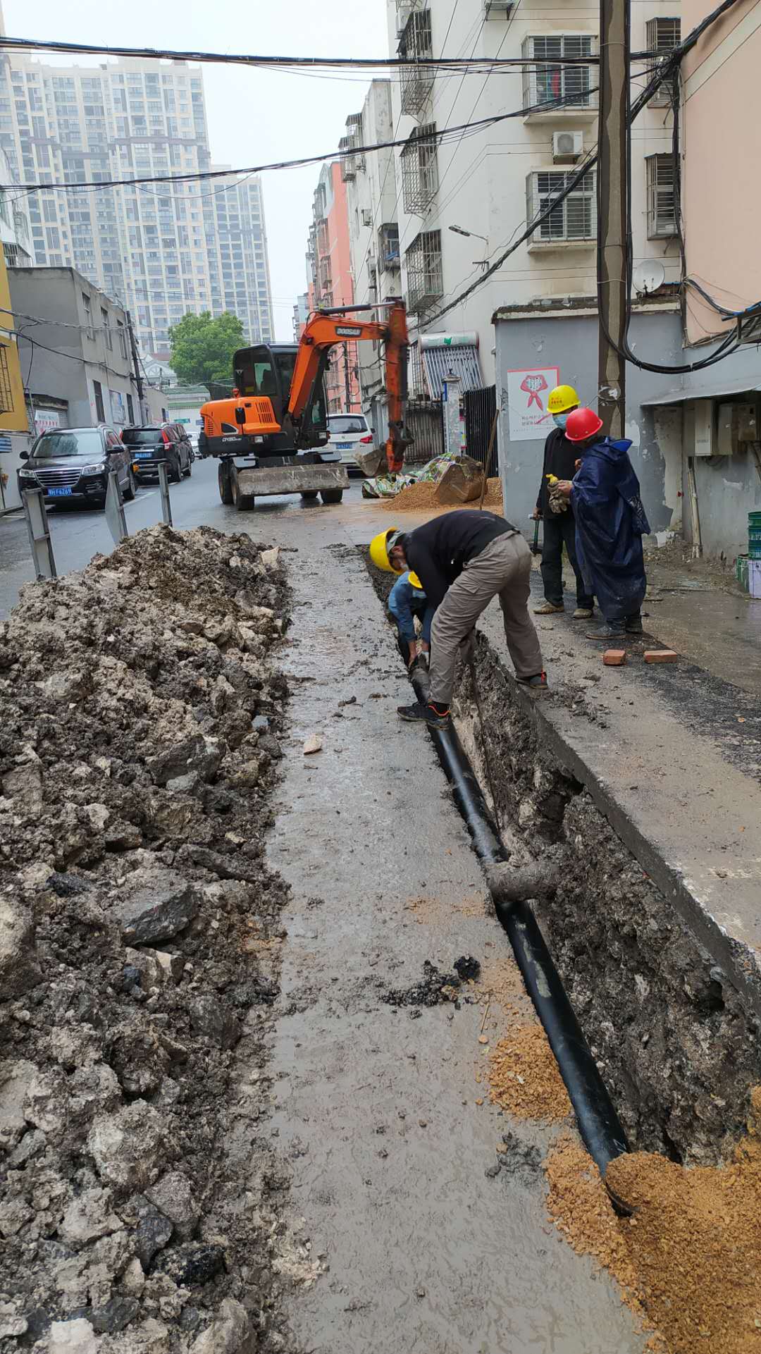 去年底,市供水總公司優(yōu)先為“退城進園”的荊門市金豐新材料有限公司安裝了用水接入水表。今年4月下旬,公司通過供水服務(wù)回訪,第一時間得知企業(yè)廠區(qū)土建工程基本完工,而內(nèi)部供水管網(wǎng)只鋪設(shè)到廠區(qū)大門。考慮到企業(yè)具有社會福利性質(zhì)及疫情給新廠區(qū)建設(shè)造成的影響,市供水總公司特事特辦,安排工程技術(shù)人員前往現(xiàn)場勘查、制定施工方案,并決定為新廠區(qū)免費安裝100余米DN160主管道。10多名精兵強將加班加點將供水管材、施工設(shè)備提前運達(dá)施工現(xiàn)場,熔管、焊接、鋪管……安裝工程緊鑼密鼓開展,5月1日,順利通水,為項目早日投產(chǎn)打下基礎(chǔ)。